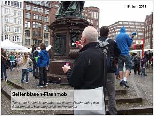 Aktuell besteht das Impro-Team der Flashmob-Community Hamburg aus etwas mehr als zehn Personen (~40% ♀/~60% ♂), die sich unregelmäßig zu Impro-Aktionen in Hamburg treffen. Das Alter der bisherigen Mitglieder liegt zwischen ca. 15 und 45 Jahren. Dieses recht überschaubare Team möchten wir auf ungefähr 30 Akteure ausweiten, um einen größeren Pool an Charakteren zur Verfügung zu haben. Außerdem haben natürlich nicht zu jedem Termin alle Zeit, so wollen wir auch dieses Hindernis durch mehr Mitglieder umgehen.